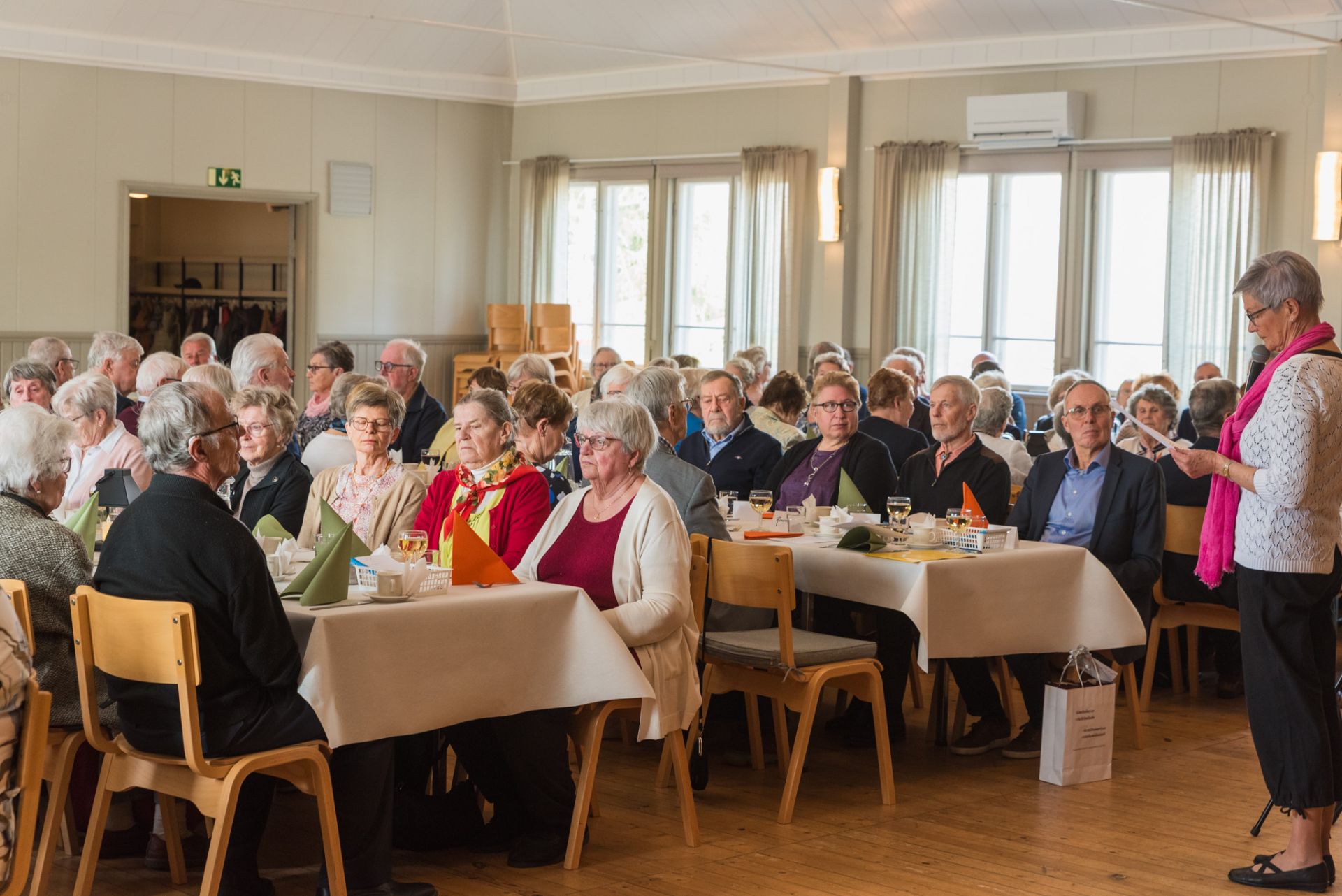 Ordförande Margareta Biström hälsar gästerna välkomna