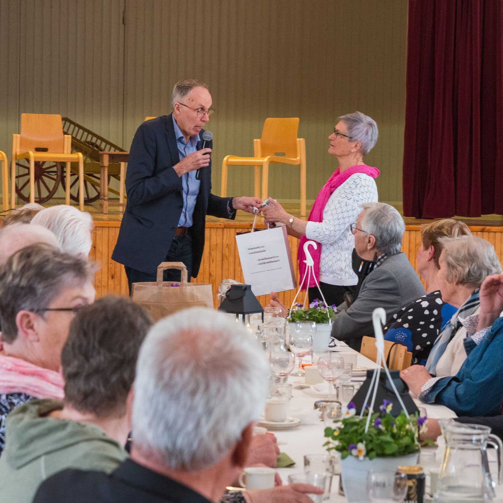 Ordförande för Kimito Pensionärföreningen Ben Johansson tackar Ingå Seniorer för träffen