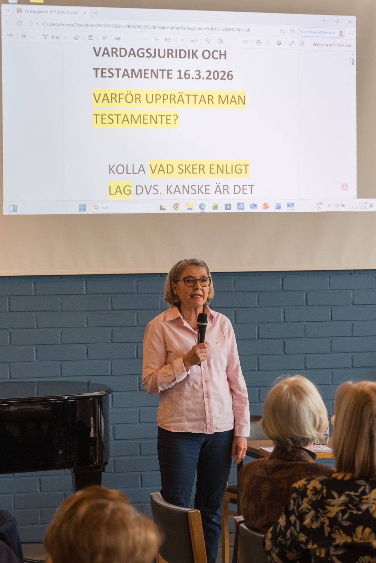 Monica Baarman-Henriksson berättade om Vardagsjuridik och varför man upprättar testamente