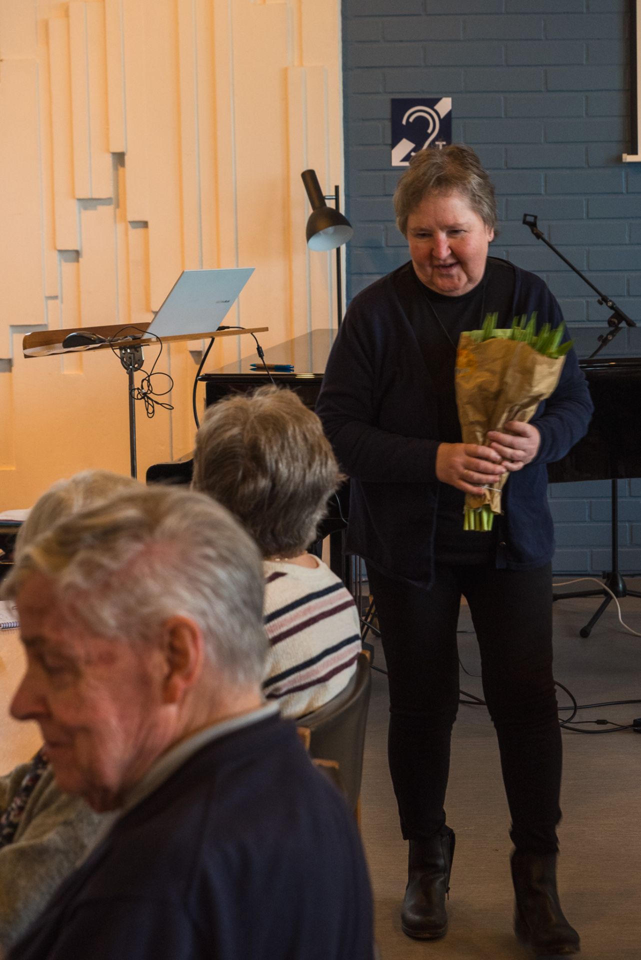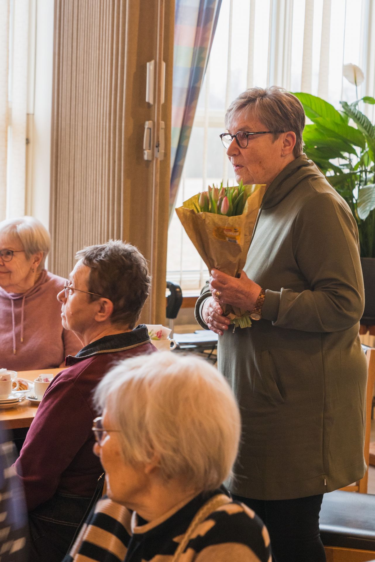 Birgitta Lindberg fick en bukett med blommor för mångårig verksamhetsgranskning